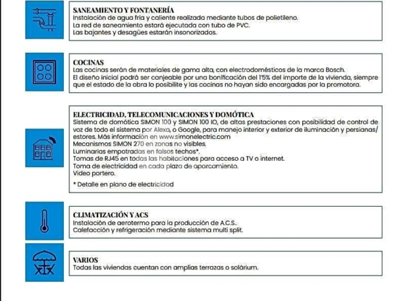 The homes are equipped with cutting-edge technology, offering advanced home automation that simplifies and enhances the living experience. Aerothermal technology provides outstanding energy efficiency, with a multi-split cooling and heating system. Additionally, its acoustic insulation guarantees privacy and comfort at all times.