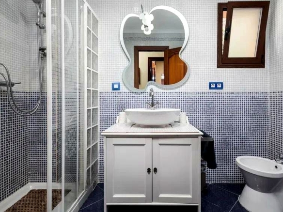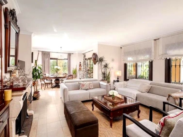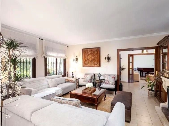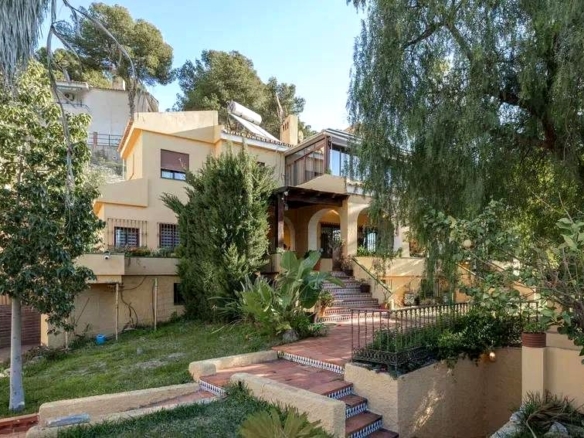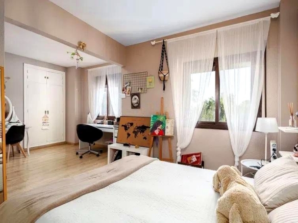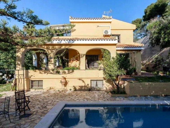 WhatsApp TLF: (+34) 670,671,098. INDEPENDENT VILLA LOCATED ON A 985 M² LOT, WITH TOTAL PRIVACY AND LUSH GREEN AREAS. IT FEATURES A PRIVATE POOL AND A BUILT AREA OF 492 M² DISTRIBUTED OVER THREE LEVELS. ON THE SEMI-BASEMENT FLOOR, THERE IS AN INDEPENDENT APARTMENT, GYM, AND FLEXIBLE SPACE. ON THE GROUND FLOOR, A SPACIOUS LIVING ROOM WITH CRYSTAL WINDOWS, INDEPENDENT KITCHEN, AND ROOM WITH PRIVATE BATHROOM. UPSTAIRS, THREE BEDROOMS, A STUDY WITH SEA VIEWS, AND THE MASTER BEDROOM WITH EN-SUITE BATHROOM. WELL-MAINTAINED GARDEN AND PRIVATE POOL. SOUTH ORIENTATION AND SOLAR ENERGY. AN EXCLUSIVE AND QUIET GEM!