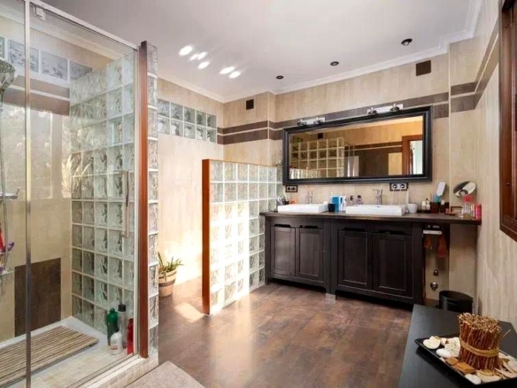The ground floor will surprise you with a large, light-filled living room thanks to its crystal windows that integrate outdoor views. The spacious dining room and independent kitchen have direct access to the outside, while a room with a private bathroom is perfect for guests or staff. Covered porches are ideal for enjoying the outdoors year-round.