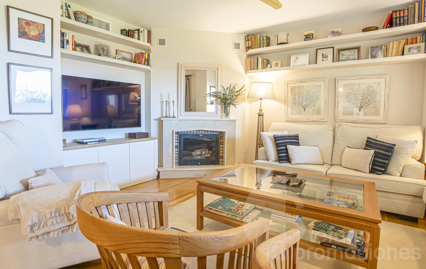 On the ground floor, there is a large living-dining room with several areas to relax and enjoy the fireplace. Access to a covered porch and a private garden with a barbecue area, also featuring a bathroom, a bedroom, a storage room, and a fully equipped kitchen with laundry area and direct exit to the porch-garden.