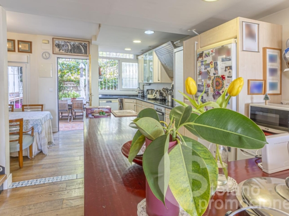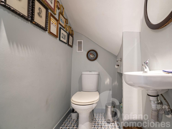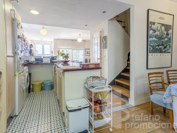 On the main floor, there is a bright living room integrated with a large kitchen and dining area, creating a modern, functional space perfect for family gatherings. It also has a guest toilet and direct access to a pleasant summer patio, ideal for outdoor meals, gatherings, or relaxing moments.