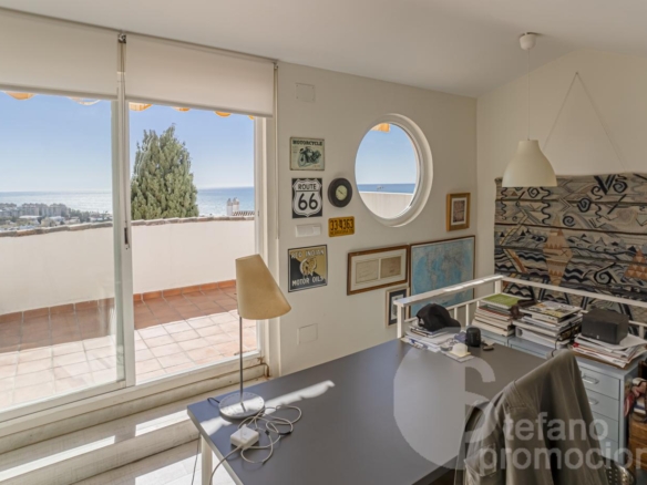 The attic floor surprises with a versatile room equipped with wardrobes and access to a private terrace with pleasant sea views, a perfect spot as a workspace, leisure room, or additional bedroom.