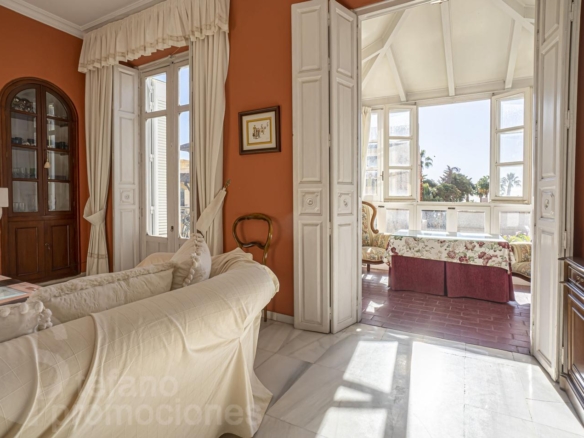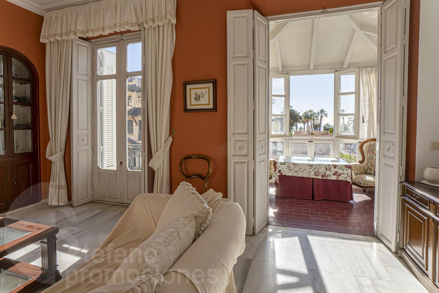 TLF: (+34) 670,671,09,8. INQUIRE ABOUT YOUR SEASONAL RENTAL!!! ELEGANT HOME, LIKE A CASTLE, OVERLOOKING PASEO DE SANCHA, NEAR THE BEACH, WITH CHARACTER, HIGH CEILINGS, AND GREAT ARCHITECTURAL DETAILS, ON PASEO DE SANCHA, NEAR THE HISTORIC CENTER, THE PIER, AND MALAGUETA BEACHES. ALL THE SERVICES OF LIVING IN THE HEART OF MALAGA CITY. YOUR FIRST RESIDENCE (WITH OR WITHOUT THE FURNITURE SHOWN IN THE PHOTOS).