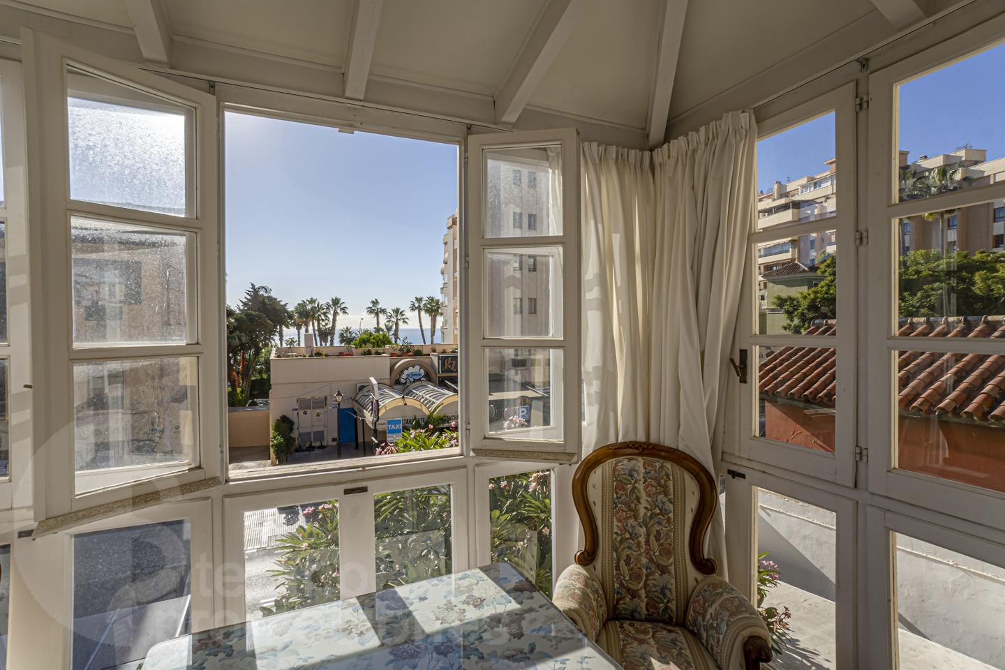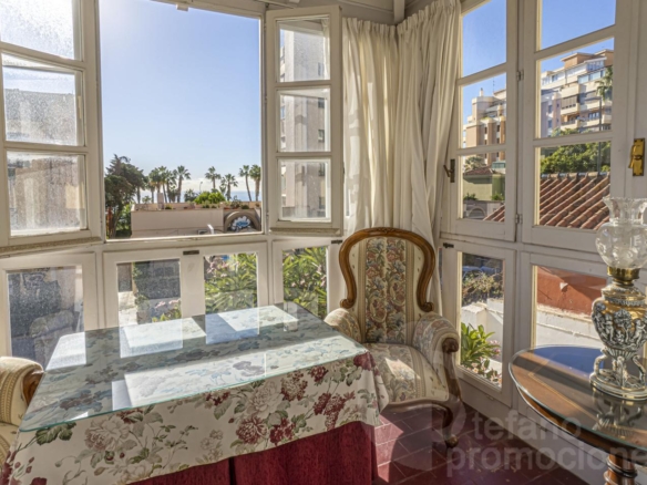 Exclusive home, select and stately, with a spacious living-dining room with a fireplace that gives the living room great romance and elegance, and with a glazed terrace facing south, sea views where you can enjoy the mornings and sunsets of Malaga city. With an independent entrance, on the first floor of a house distributed over two floors, this residence is on the first floor with an independent access as if it were a house from the back, arranged in a beautiful vestibule with a toilet, large independent kitchen with an office, and charming windows, with service area and pantry. It consists of 2 bedrooms, one of them with spacious built-in wardrobes, suite type, with a bathroom with a Jacuzzi and wonderful sea views.