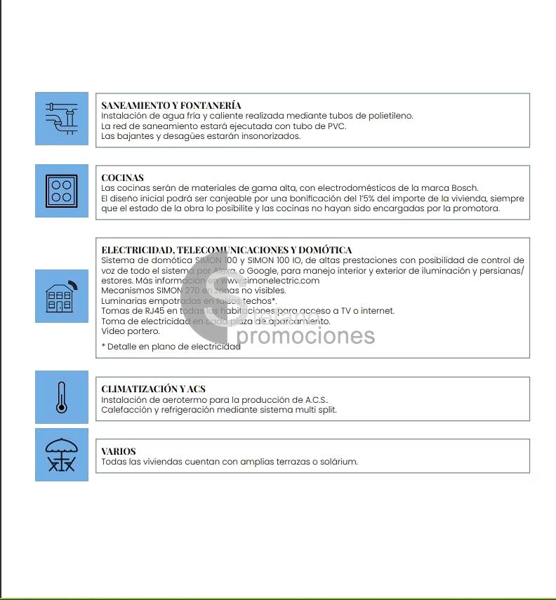 The homes are equipped with cutting-edge technology, offering advanced home automation that simplifies and enhances the living experience. Aerothermal energy provides outstanding energy efficiency, with a multi-split cooling and heating system. Additionally, its acoustic insulation guarantees privacy and comfort at all times.