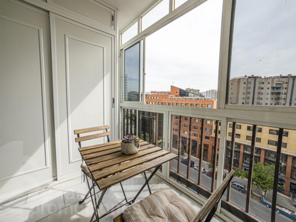 The property is on an elevated ground floor (not at street level), fully exterior and very bright. It has three spacious bedrooms with built-in wardrobes, two full bathrooms (one en suite with direct access to the terrace), fully equipped independent kitchen with state-of-the-art appliances, and a very cozy living room with air conditioning installed throughout the house.