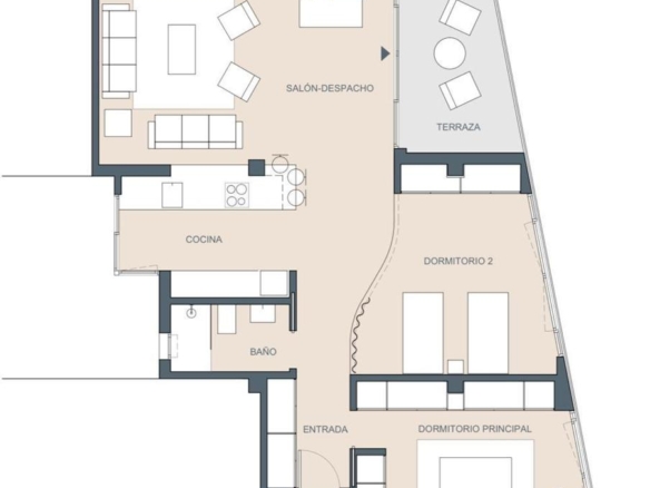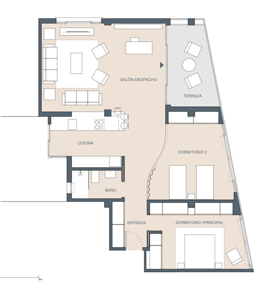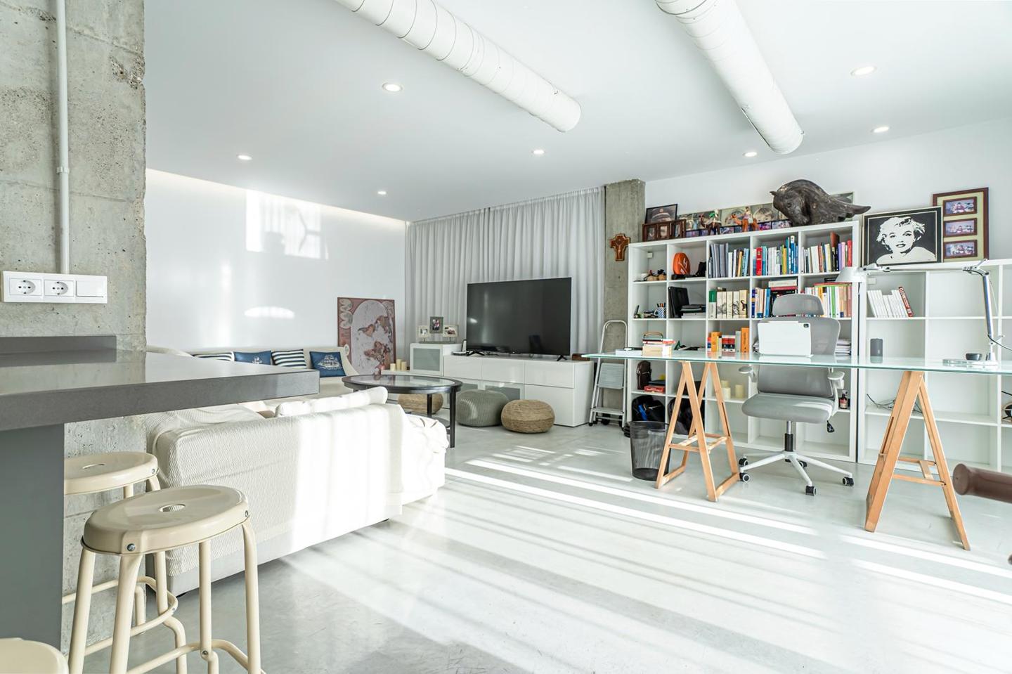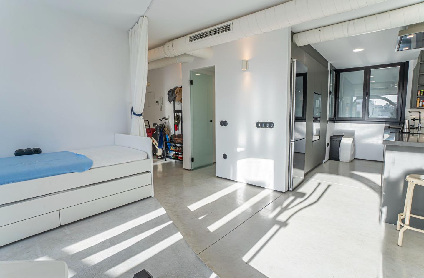 Originally three bedrooms, it has been transformed into a sophisticated loft with two spacious areas, where natural light and open spaces are the main features.