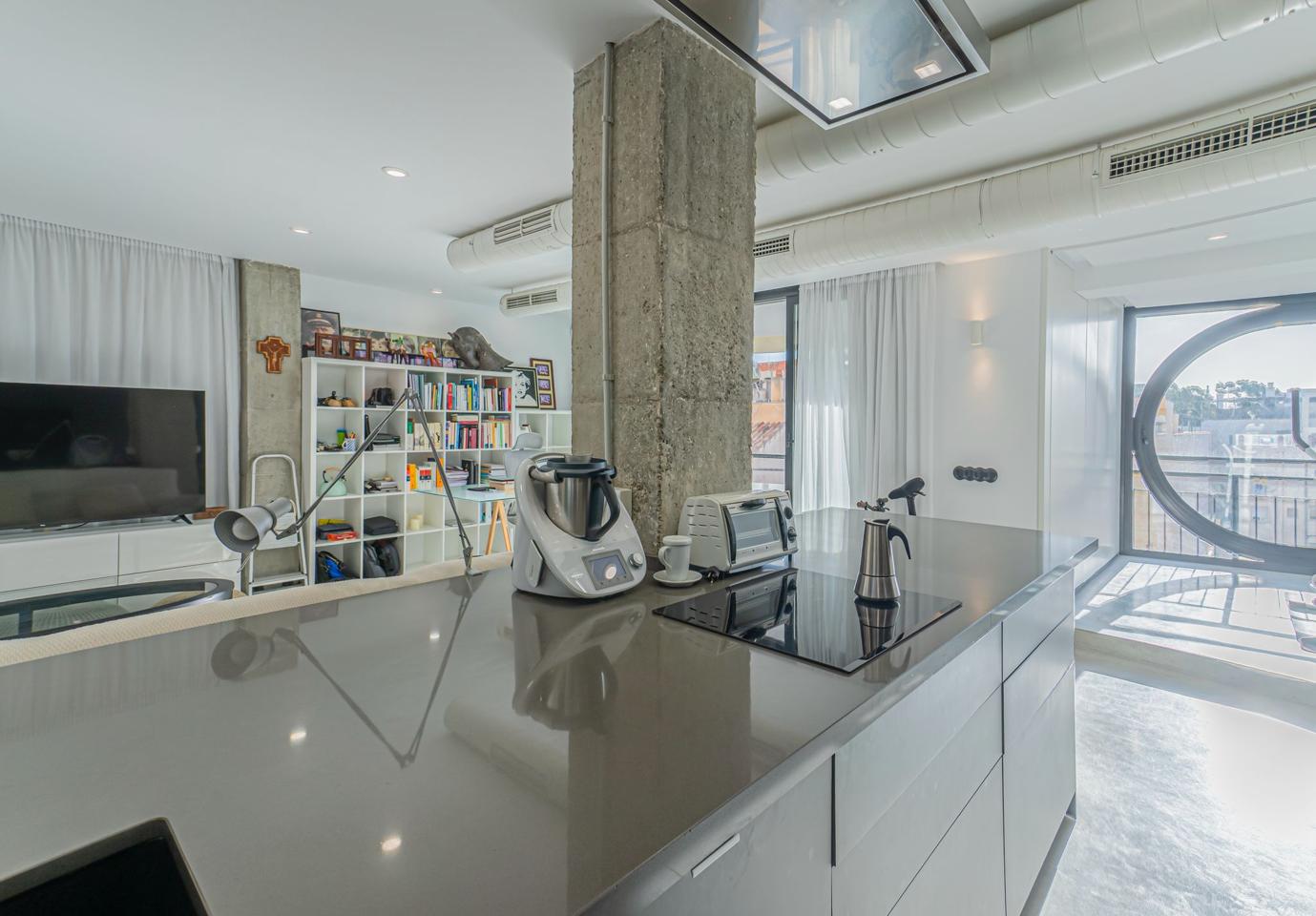 Its designer kitchen with a central island stands out for its modern aesthetics, functionality, and modular solutions that maximize every corner.
