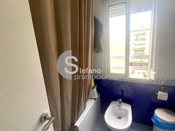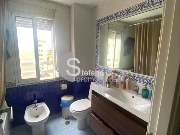 Currently, the home has one full bathroom, although it originally had two; the second can be easily restored, as the installations and finishes are preserved (it is now used as storage). The finishes include wood-effect porcelain flooring, resistant and warm. Additionally, it enjoys side views of the sea, a detail that adds exclusivity and serenity.