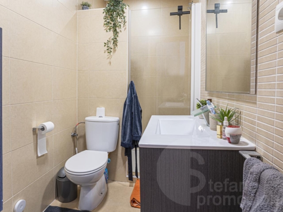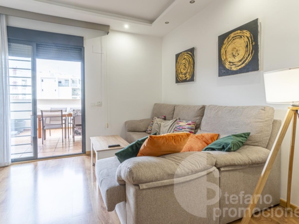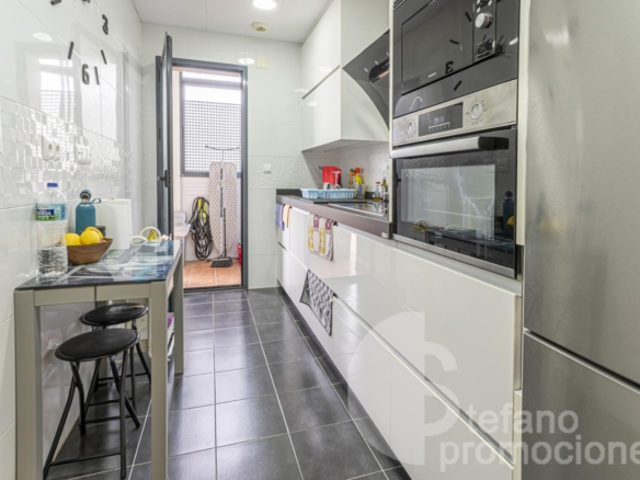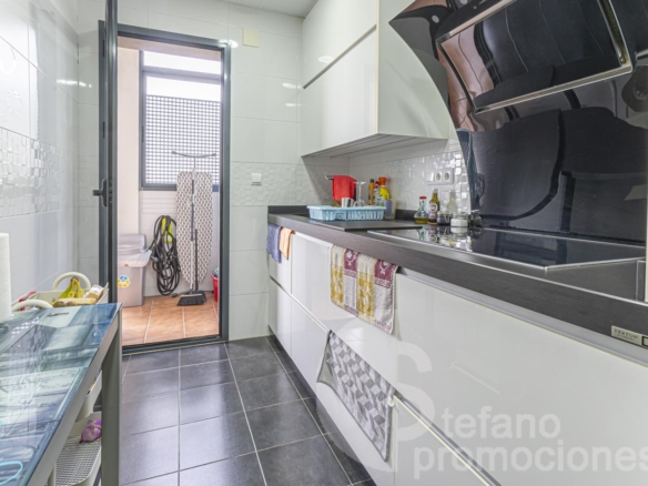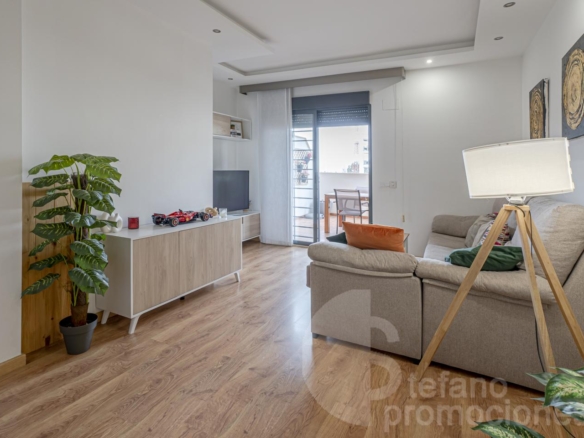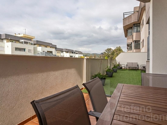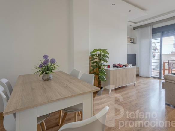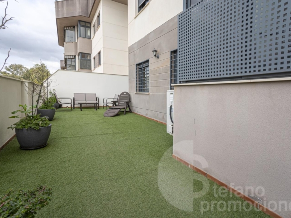The property is on a raised ground floor (not at street level), fully exterior, and very bright. It has three spacious bedrooms with built-in wardrobes, two full bathrooms (one en suite with direct access to the terrace), fully equipped independent kitchen with the latest appliances, and a very cozy living room with air conditioning installed throughout the house.