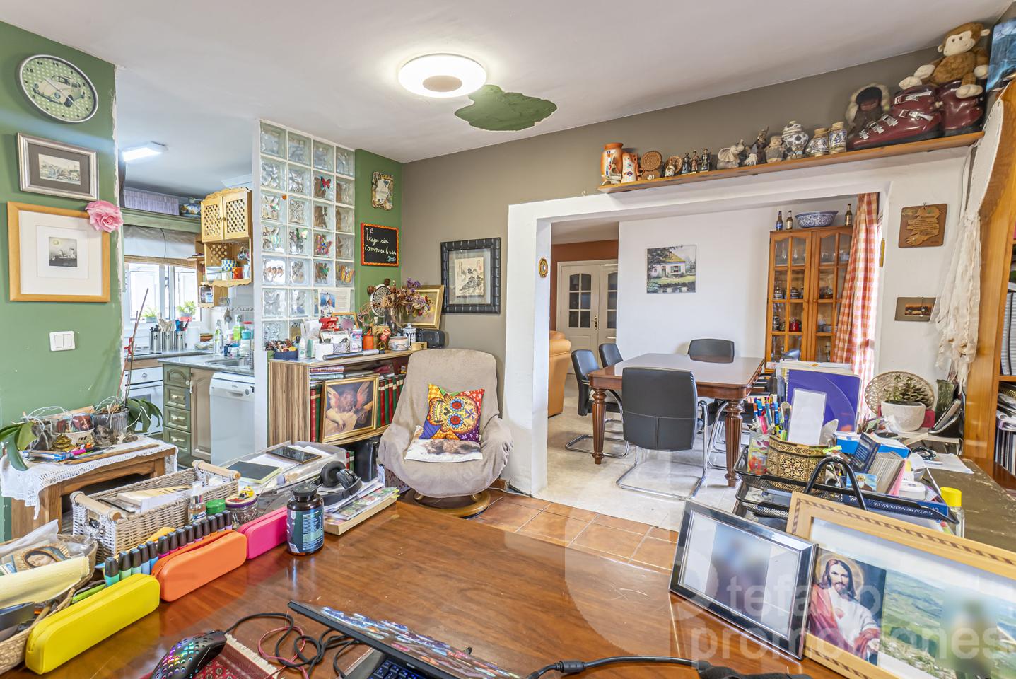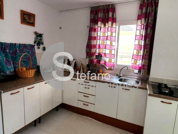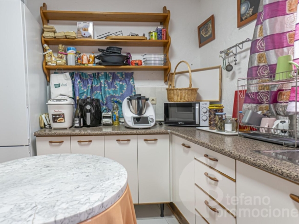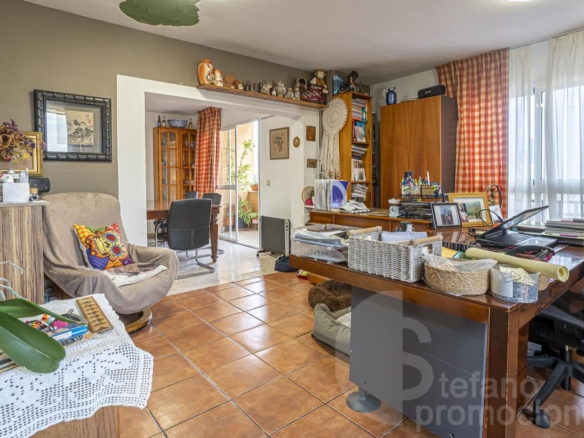 It has 5 bedrooms, 3 bathrooms, a large main living room, office, two kitchens, two sunny terraces, storage room, and two parking spaces.