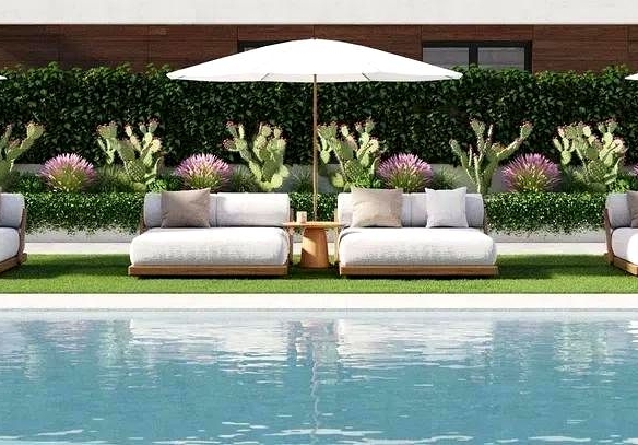 -Dos piscinas comunitarias, de diseño, para adultos, con zonas ajardinadas, solarium y aseos. Con sistema de cloración salina.