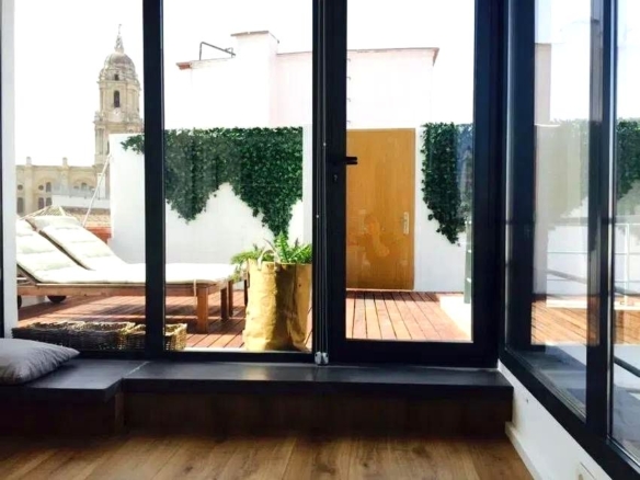 Vive el centro histórico desde las alturas en este ático exclusivo en la 6ª planta, que ofrece vistas panorámicas de 360º de la ciudad y dos terrazas privadas, perfectas para disfrutar del sol y de los atardeceres malagueños.