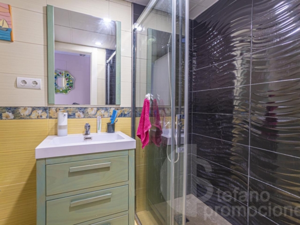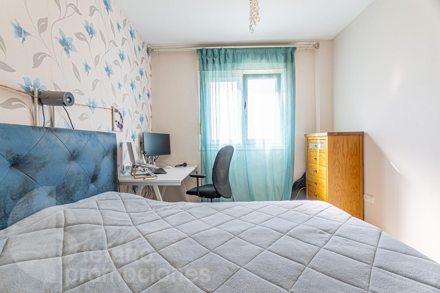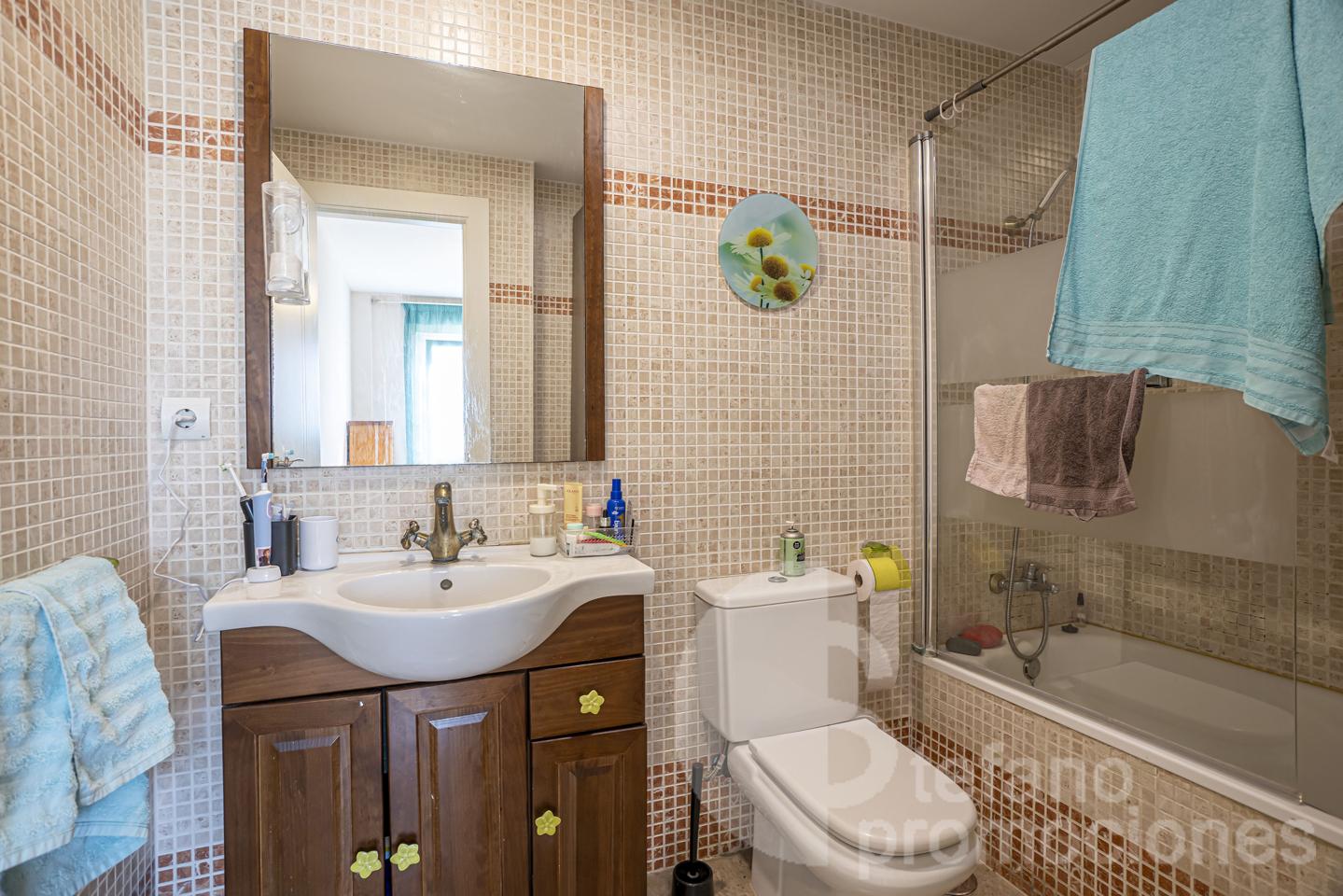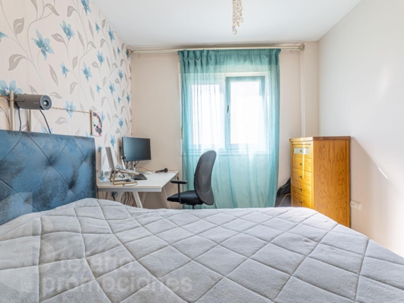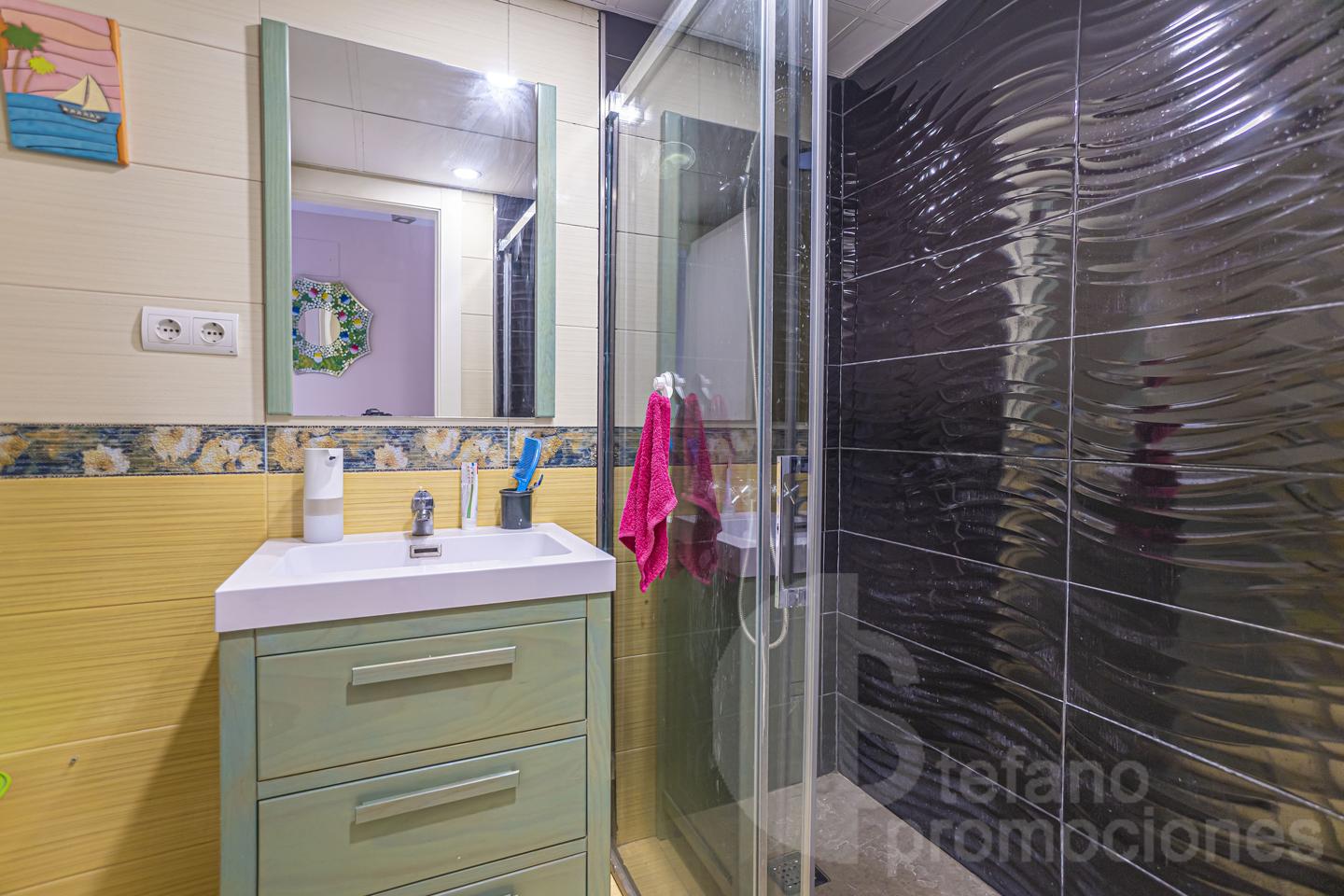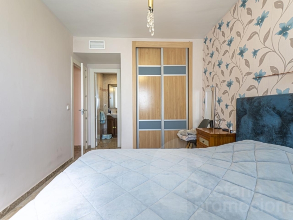 Con 95 m² construidos y opción de redistribución a tres dormitorios, la vivienda ofrece una configuración cómoda, luminosa y funcional. Actualmente cuenta con dos amplios dormitorios equipados con armarios empotrados y dos baños completos, uno de ellos reformado en 2016 con actualización integral de azulejos y plato de ducha.