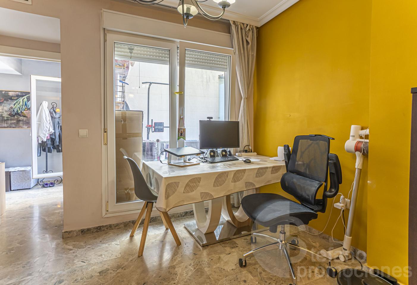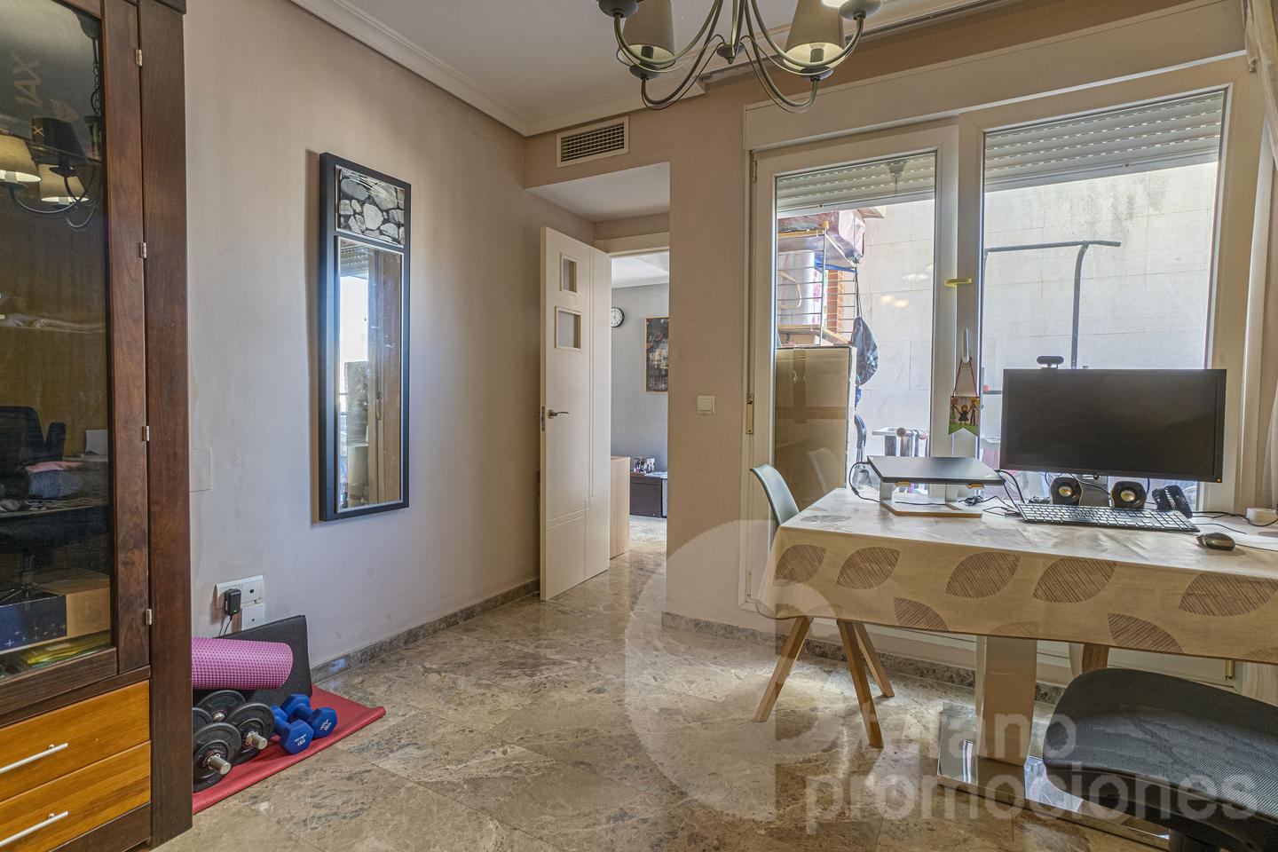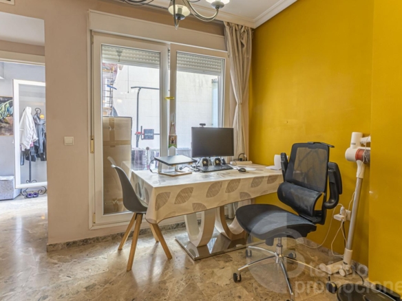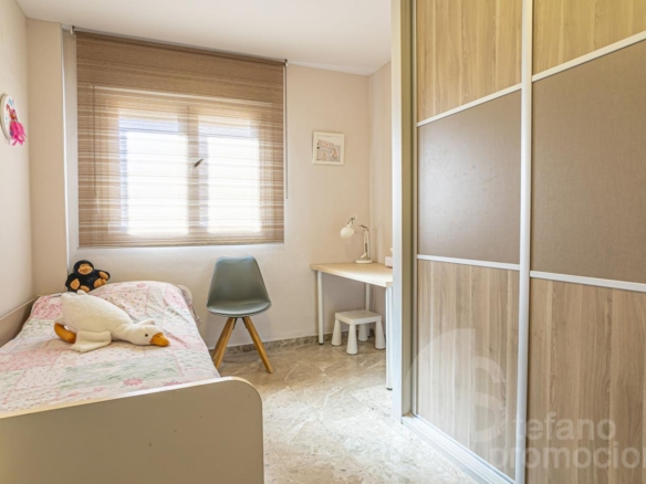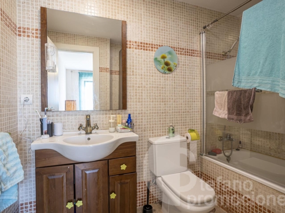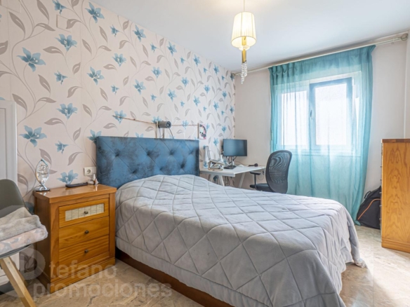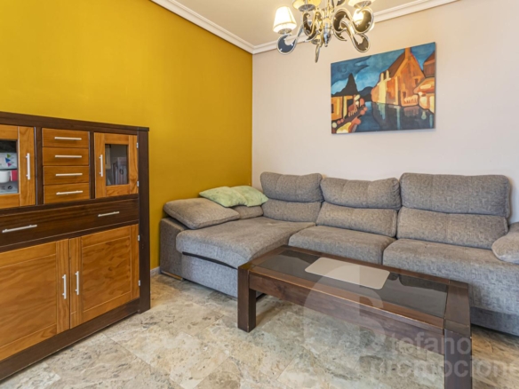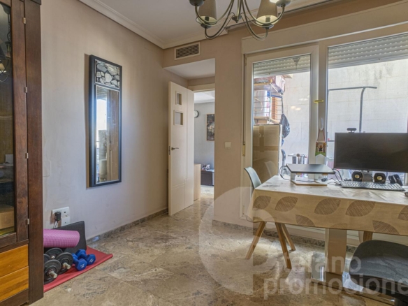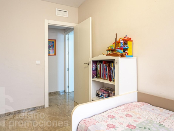 Con 95 m² construidos y opción de redistribución a tres dormitorios, la vivienda ofrece una configuración cómoda, luminosa y funcional. Actualmente cuenta con dos amplios dormitorios equipados con armarios empotrados y dos baños completos, uno de ellos reformado en 2016 con actualización integral de azulejos y plato de ducha.