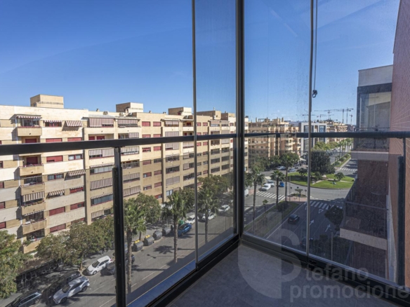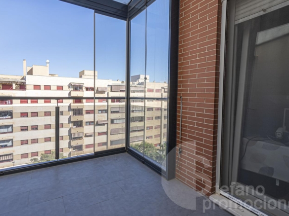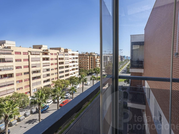 El salón-comedor, totalmente exterior, goza de una excelente entrada de luz natural y acceso a una terraza acristalada de 11 M2 con sistema Lumon, que funciona como espacio polivalente: zona de relax, despacho o comedor adicional. La orientación del ático, junto con su posición en la última planta, garantiza luminosidad continua y sensación de amplitud en todas las estancias.