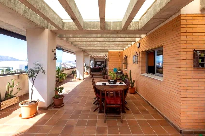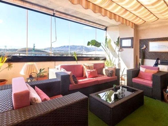 El verdadero lujo de este ático es su impresionante terraza a doble nivel. La planta principal cuenta con una gran terraza perimetral de 120m2, totalmente acristalada y protegida con sistema Lumon, ideal para crear distintos ambientes: zona de comedor exterior para cenas y desayunos al aire libre, área chill-out con mobiliario de diseño, espacio para juegos o solárium, zona fitness o tu propio huerto urbano. Todos estos espacios permiten disfrutar del magnífico clima de Málaga durante todo el año, con privacidad total y unas vistas abiertas a la ciudad, la montaña e incluso el mar; un auténtico oasis urbano.
