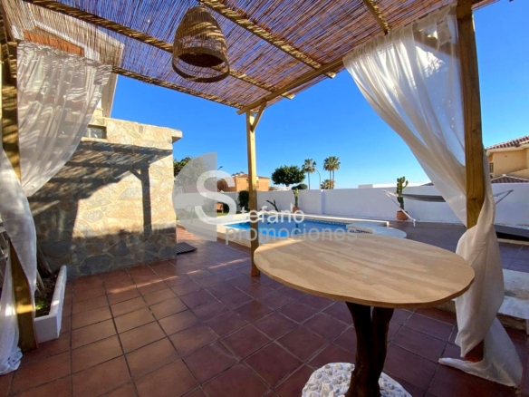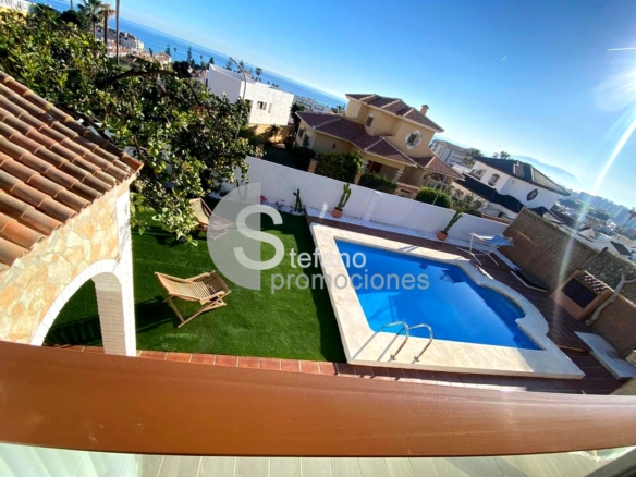 TLF WhatsApp: (+34) 670,671,09,8. COMODO CHALET INDEPENDIENTE A SOLO 400 M DE LA PLAYA CON LICENCIA TURÍSTICA y BONITO DISEÑO y ENCANTO . PARCELA DE 500 M², CON 3 AMPLIOS DORMITORIOS, 2 BAÑOS COMPLETOS Y ASEO EXTERIOR. GRAN SALÓN CON CHIMENEA Y VISTAS A LA BAHÍA, COCINA MODERNA . REFORMA INTEGRAL, SUELO DE TARIMA Y AIRE ACONDICIONADO EN TODAS LAS ESTANCIAS. EXTERIORES CON PISCINA PRIVADA, TERRAZA CON BARBACOA, BODEGA/TRASTERO Y PARKING PARA 2 COCHES. ZONA TRANQUILA Y BIEN COMUNICADA, CON LICENCIA TURÍSTICA EN VIGOR. LISTO PARA ENTRAR A VIVIR Y DISFRUTAR DESDE EL PRIMER DÍA.