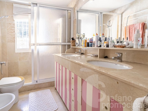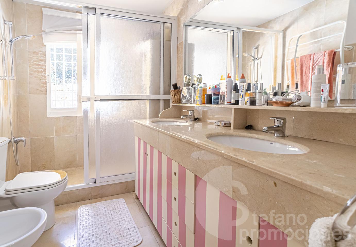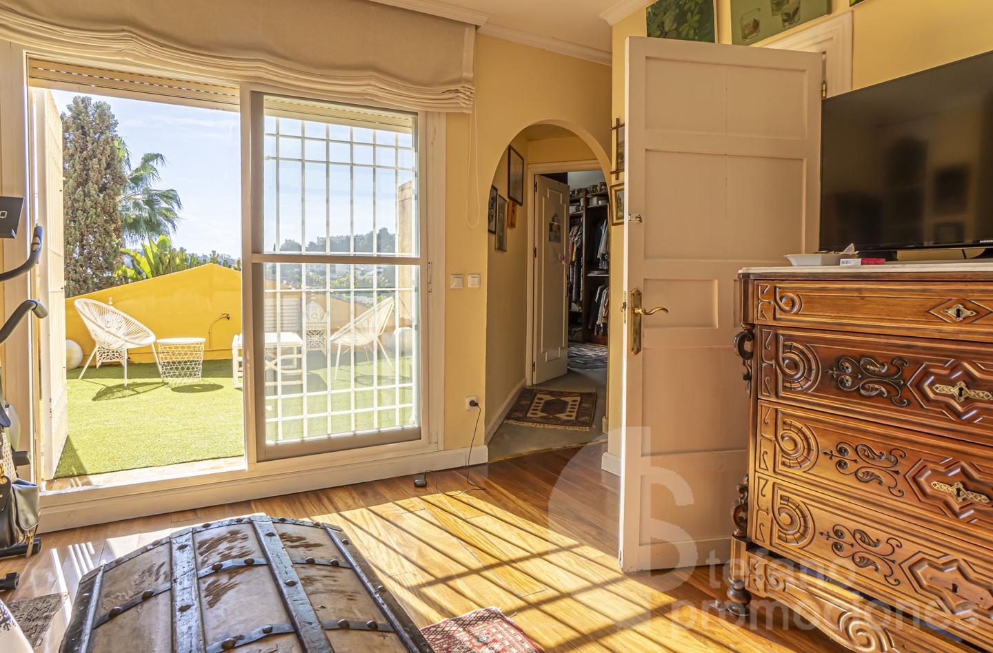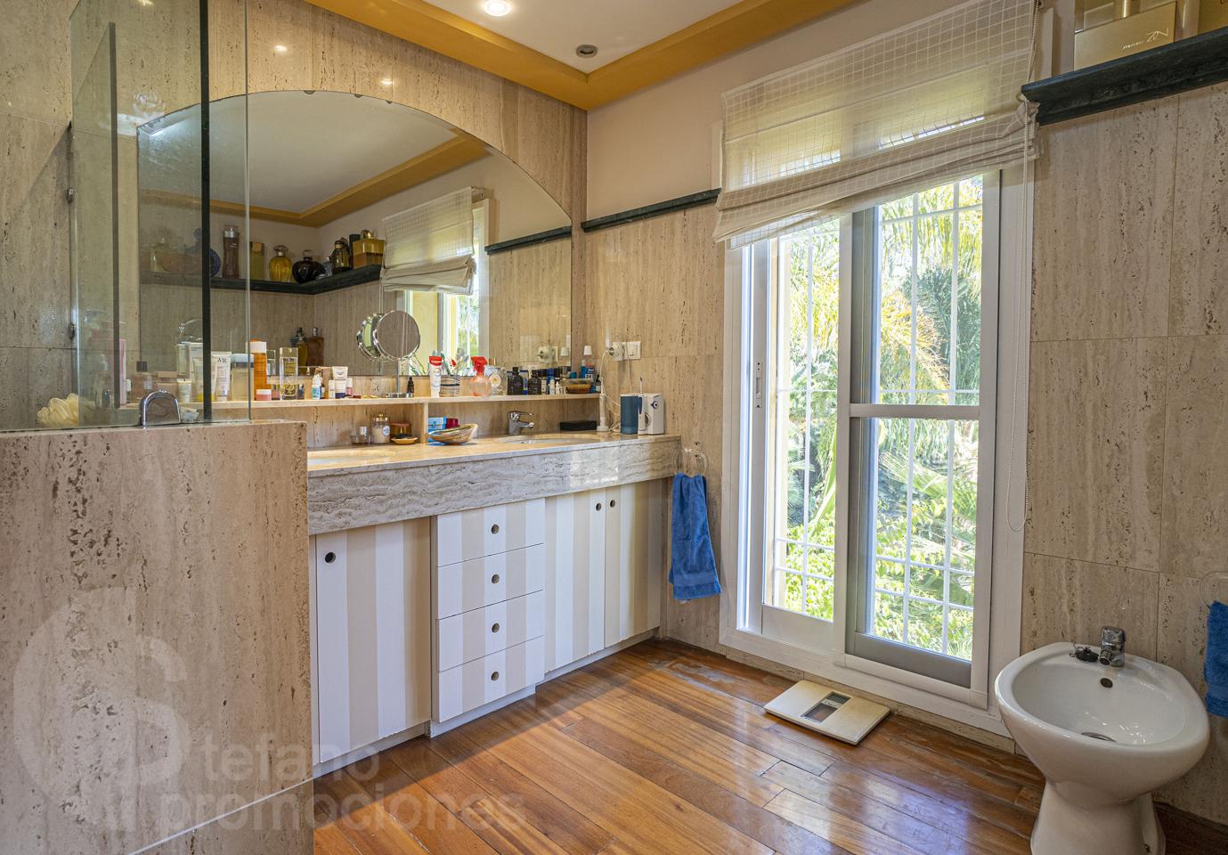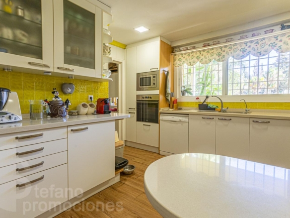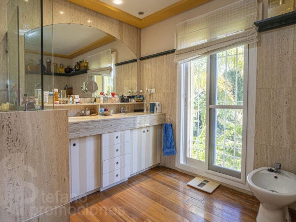 Construida con materiales de calidad, esta propiedad cuenta con baños completamente revestidos en mármol, lo que aporta elegancia y durabilidad. Además, el suelo de tarima de madera maciza se extiende por toda la vivienda, excepto en la cocina, el lavadero y los baños, añadiendo calidez y sofisticación a cada rincón.