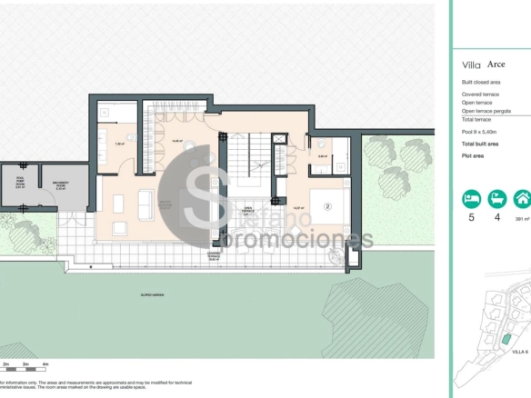 Con una superficie de 533 m² construidos totales , incluyendo 149 m² de terrazas. La propiedad se asienta sobre una parcela privada diseñada para la tranquilidad y el disfrute de vistas panorámicas, al mar y a la montaña. Sus interiores, diseñados bajo un concepto abierto, están realzados por ventanales de suelo a techo que inundan la vivienda de luz natural y ofrecen impresionantes vistas panorámicas del paisaje circundante.