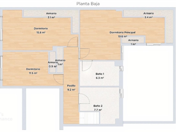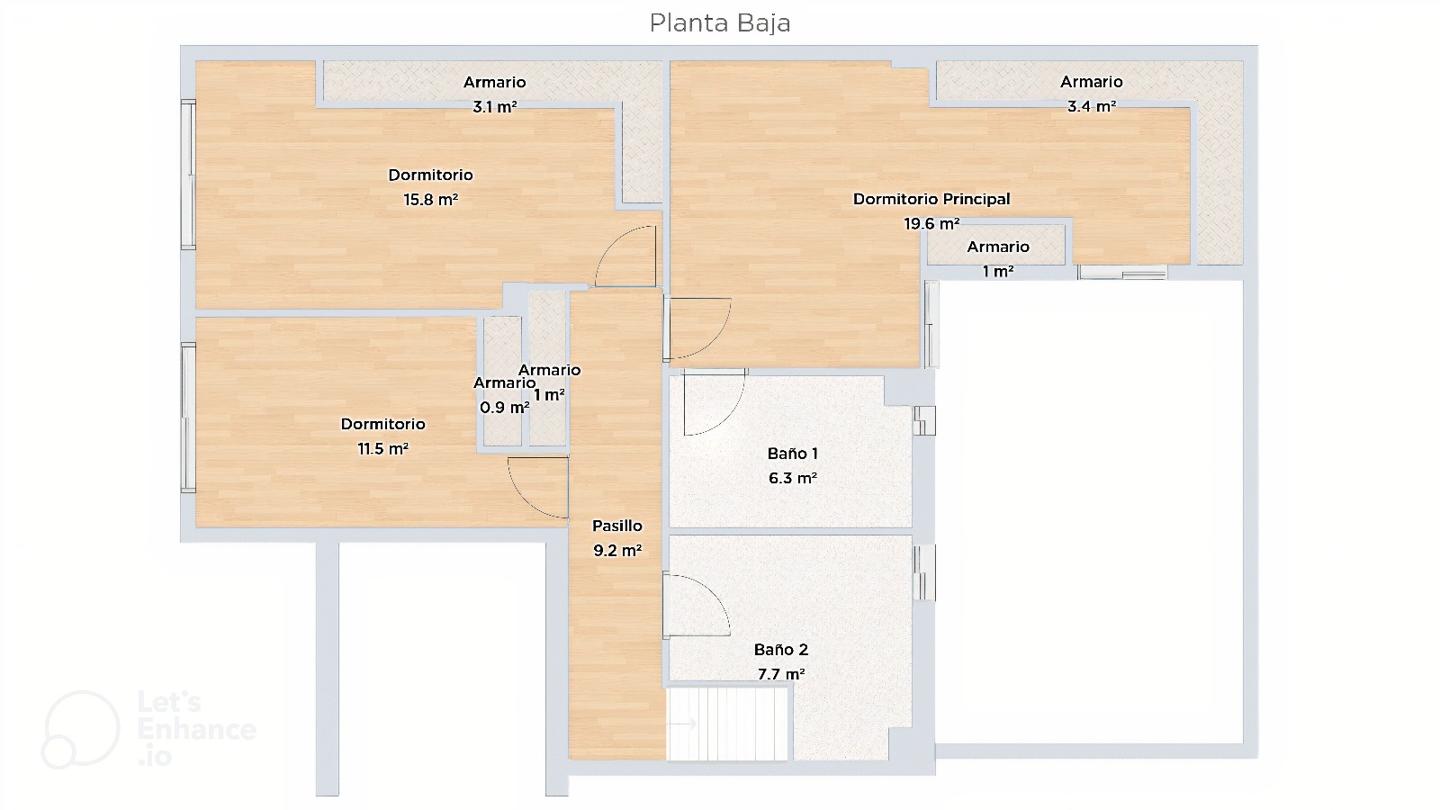 3 amplios dormitorios, uno de ellos en suite con vestidor y baño y otros dos dormitorios con gran capacidad de almacenaje.