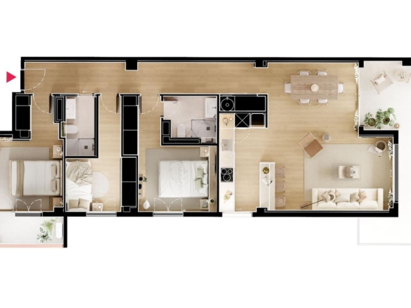 La vivienda destaca por su diseño moderno y funcional: un amplio salón-comedor con cocina abierta, ideal para compartir momentos en familia, 3 dormitorios espaciosos y 2 baños completos. Además, podrás disfrutar de su terraza, perfecta para el clima de Málaga.