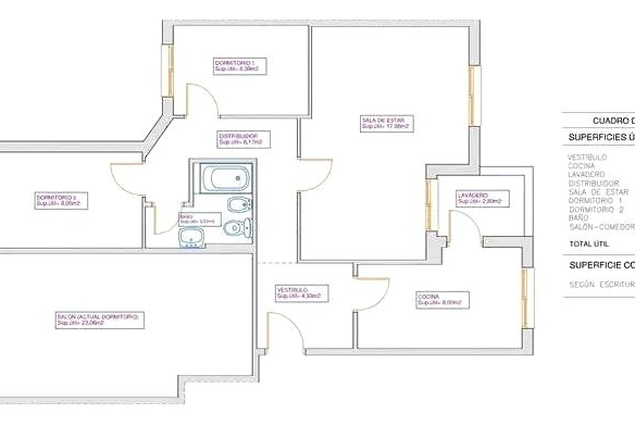 Actualmente cuenta con 3 amplias habitaciones, aunque originalmente eran 4. Dos de ellas están unidas en una elegante suite, pero pueden separarse fácilmente para recuperar la cuarta habitación, según las necesidades del comprador.