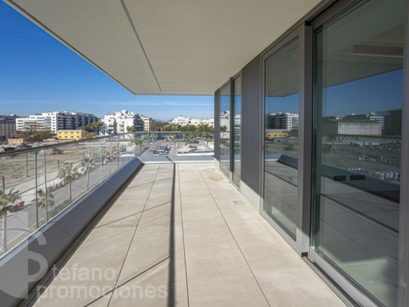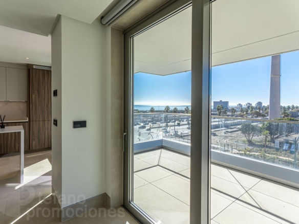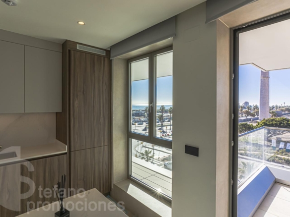 Vivir frente al mar y estrenar vivienda es una experiencia reservada para muy pocos. Le presentamos este exclusivo piso a estrenar en Málaga Towers ,en uno de los complejos residenciales más prestigiosos de la ciudad, ubicado en primera línea de playa y con vistas privilegiadas a toda la bahía de Málaga.
