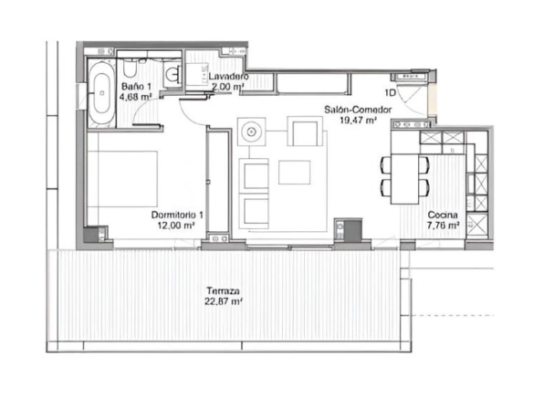 El interior se distribuye en un amplio dormitorio, un baño completo de diseño actual, un práctico lavadero independiente y un elegante salón-comedor con cocina integrada totalmente equipada. Desde el salón se accede a una espectacular terraza de 23 m², un espacio ideal para disfrutar del clima mediterráneo, el mar y los atardeceres de Málaga.
